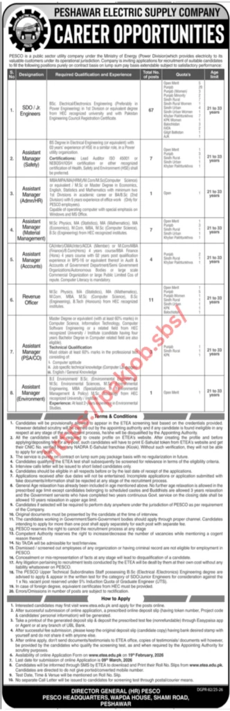 These roles are ideal for applicants searching for PESCO careers, engineering jobs in Pakistan, and KPK government jobs 2026.