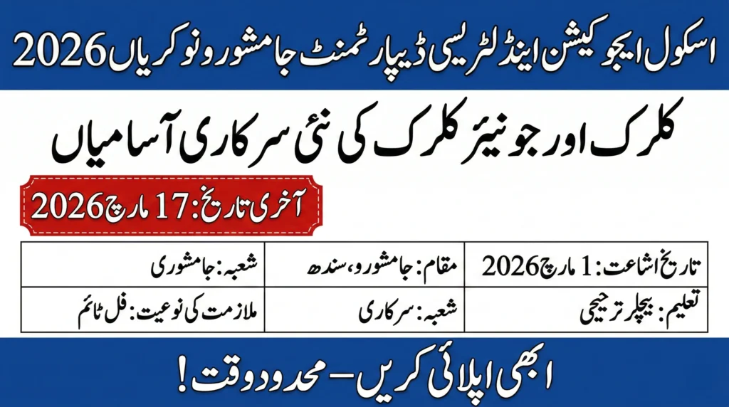 The School Education & Literacy Department, Government of Sindh, has announced fresh recruitment opportunities for 2026 under the Directorate of