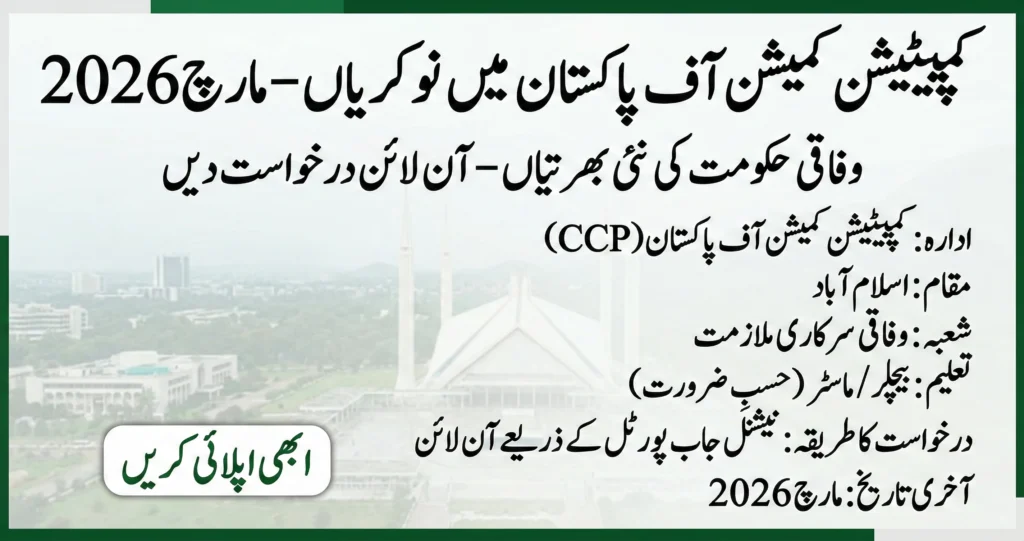 The Competition Commission of Pakistan (CCP) has announced new job openings for March 2026, offering excellent career opportunities for qualified