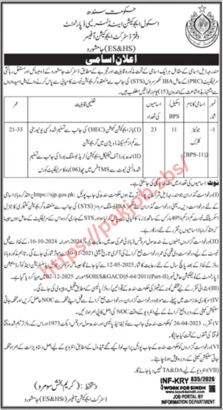 The School Education & Literacy Department Jamshoro Jobs 2026 have officially been announced through a leading national newspaper, offering excellent career opportunities for candidates seeking Sindh Government Jobs 2026. These new openings are ideal for individuals looking to secure a stable position in the public sector, particularly in clerical and administrative roles.