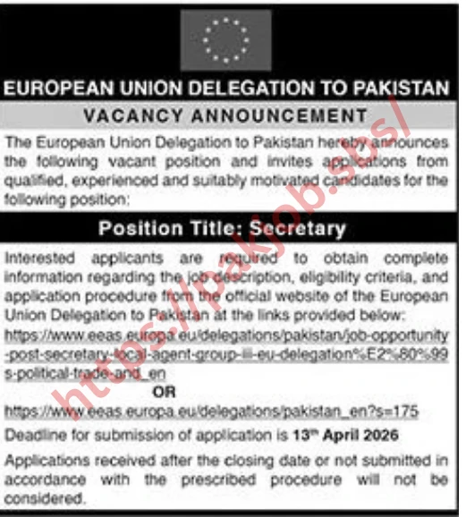 If you are searching for EU jobs in Pakistan or planning to work in an international environment, a new opportunity has been announced by the European Union Delegation to Pakistan. This latest opening is for a Secretary position in Islamabad, attracting candidates interested in embassy jobs Pakistan and professional office careers.