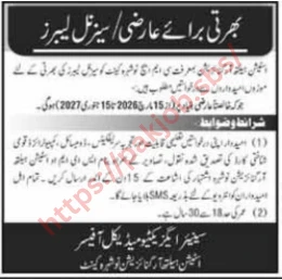 The department is hiring for labor-related positions under the health services sector. Candidates with Primary or Middle education are encouraged to apply. These roles fall under public sector healthcare support services in Khyber Pakhtunkhwa.